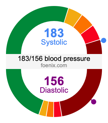 The illustration below gives a visual representation of the blood pressure 183/156 so you can better understand what it means and where it falls on the blood pressure chart.