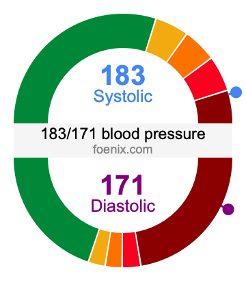 The illustration below gives a visual representation of the blood pressure 183/171 so you can better understand what it means and where it falls on the blood pressure chart.