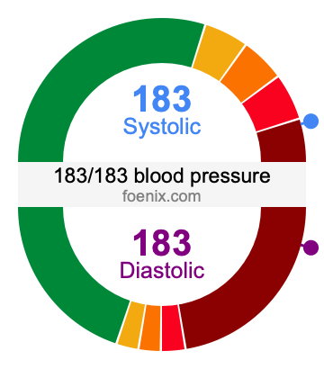 The illustration below gives a visual representation of the blood pressure 183/183 so you can better understand what it means and where it falls on the blood pressure chart.
