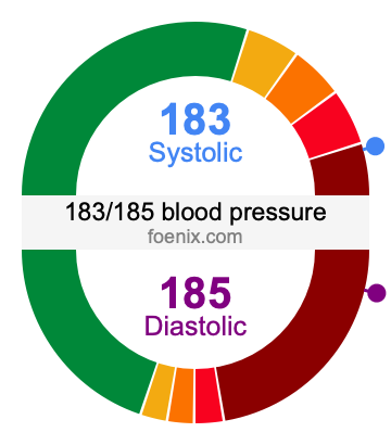 The illustration below gives a visual representation of the blood pressure 183/185 so you can better understand what it means and where it falls on the blood pressure chart.