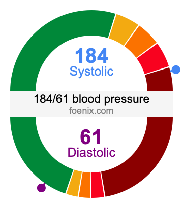 The illustration below gives a visual representation of the blood pressure 184/61 so you can better understand what it means and where it falls on the blood pressure chart.