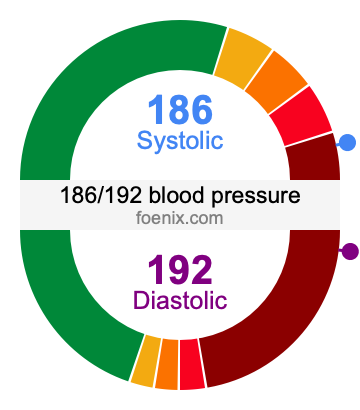 The illustration below gives a visual representation of the blood pressure 186/192 so you can better understand what it means and where it falls on the blood pressure chart.
