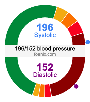 The illustration below gives a visual representation of the blood pressure 196/152 so you can better understand what it means and where it falls on the blood pressure chart.
