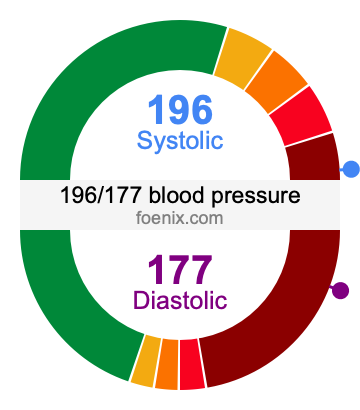 The illustration below gives a visual representation of the blood pressure 196/177 so you can better understand what it means and where it falls on the blood pressure chart.