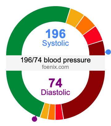 The illustration below gives a visual representation of the blood pressure 196/74 so you can better understand what it means and where it falls on the blood pressure chart.