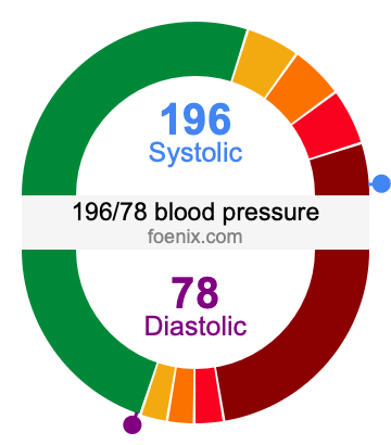 The illustration below gives a visual representation of the blood pressure 196/78 so you can better understand what it means and where it falls on the blood pressure chart.