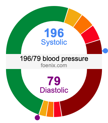 The illustration below gives a visual representation of the blood pressure 196/79 so you can better understand what it means and where it falls on the blood pressure chart.