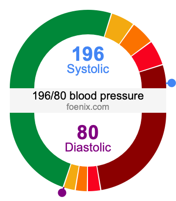 The illustration below gives a visual representation of the blood pressure 196/80 so you can better understand what it means and where it falls on the blood pressure chart.