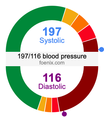 The illustration below gives a visual representation of the blood pressure 197/116 so you can better understand what it means and where it falls on the blood pressure chart.