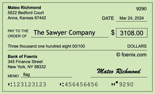 As the illustration above shows, the $3,108 check dated Mar 24, 2024 was written and signed by Mateo Richmond.