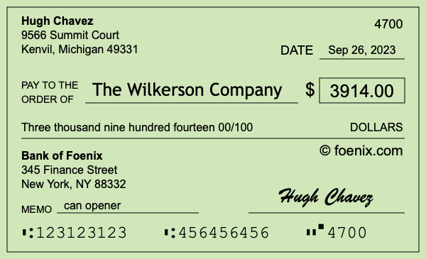 As the illustration above shows, the $3,914 check dated Sep 26, 2023 was written and signed by Hugh Chavez.