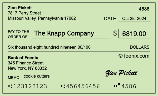 As the illustration above shows, the $6,819 check dated Oct 28, 2024 was written and signed by Zion Pickett.