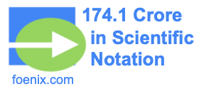 What is 174.1 crore in scientific notation? Here we will show you how to convert 174.1 crore into scientific notation. We start by writing 174.1 crore (one hundred seventy-four crore ten lakh) in decimal notation (decimal form), like this: