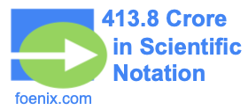 What is 413.8 crore in scientific notation? Here we will show you how to convert 413.8 crore into scientific notation. We start by writing 413.8 crore (four hundred thirteen crore eighty lakh) in decimal notation (decimal form), like this: