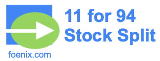 More specifically, a 11 for 94 stock split means that you get 11 stocks for every 94 stocks you own. In other words, every 94 shares is replaced by 11 shares. Therefore, the number of shares owned by each shareholder will decrease by about 88.30 percent.