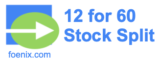 A 12 for 60 stock split or 12:60 stock split ratio can be converted into a 12/60 fraction. Since a 12/60 fraction is less than 1, it means that a 12 for 60 stock split decreases the number of shares of a company. This is called a reverse stock split.