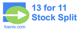 A 13 for 11 stock split or 13:11 stock split ratio can be converted into a 13/11 fraction. Since a 13/11 fraction is greater than 1, it means that a 13 for 11 stock split increases the number of shares of a company. This is called a forward stock split.