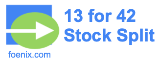 A 13 for 42 stock split or 13:42 stock split ratio can be converted into a 13/42 fraction. Since a 13/42 fraction is less than 1, it means that a 13 for 42 stock split decreases the number of shares of a company. This is called a reverse stock split.