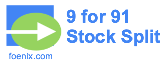 A 9 for 91 stock split or 9:91 stock split ratio can be converted into a 9/91 fraction. Since a 9/91 fraction is less than 1, it means that a 9 for 91 stock split decreases the number of shares of a company. This is called a reverse stock split.