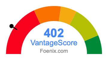 The VantageScore credit scores range from 300 to 850. Here is where your 402 VantageScore credit score fits into that range: